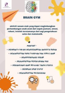 Brain Gym atau Senam Otak adalah suatu rangkaian aktiviti yang dipercayai dapat merangsangkan pemikiran secara menyeluruh, membina sikap positif, meningkatkan kecergasan dan yang paling penting sekali “Brain Gym” dapat mengimbangkan perkembangan kanak-kanak dari aspek jasmani, emosi, rohani dan intelek terutamanya dari segi pengetahuan Sains dan Matematik.